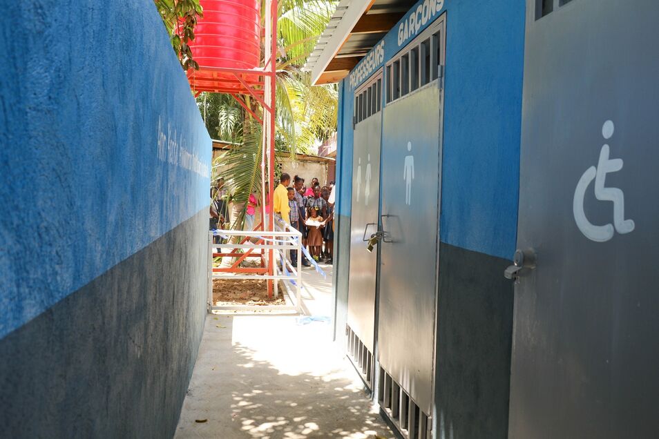 Collège Roi Henry Christophe is a primary school in the community of Limonade, Haiti. There are 356 students and teachers who work and learn at this school. Thanks to many generous donors, the Pure Water for the World staff (our implementing partner) was able to provide a much-needed WASH (water, sanitation, and hygiene education) program in this school. To date, we have constructed 6 bathrooms for girls, boys, and teachers, updated the water source for improved quality and quantity of water, and constructed handwashing stations. We are presently installing the filters and providing 4 weeks of hygiene education to the students and teachers. We will also be helping the school establish a hygiene committee. More to follow as we work in the next few weeks to complete this project.