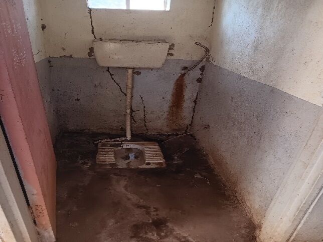 The toilets themselves are in very poor condition. The school has 12 squat toilets, but many have broken fixtures, blocked pipes, and damaged wastewater systems. One septic tank has a broken cover, and another abandoned tank sits uncovered, posing a danger to children playing nearby.